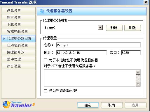 今天测试了几个代理服务器地址 找到一个比较快的 给大家共享 地址 203.95.105.2 断口 8080 代理服务器每天都会更新,也许今天可以用,明天就不能用了,大家自己勤更换就行 | 潜灵 2006-04-28 11:52:49 11樓 |